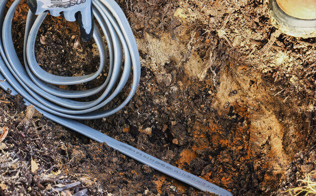 Professional installation of underground consumer mains from the point of supply to your switchboard using high-quality XLPE or SDI cables in heavy-duty conduit with regulation warning tape.